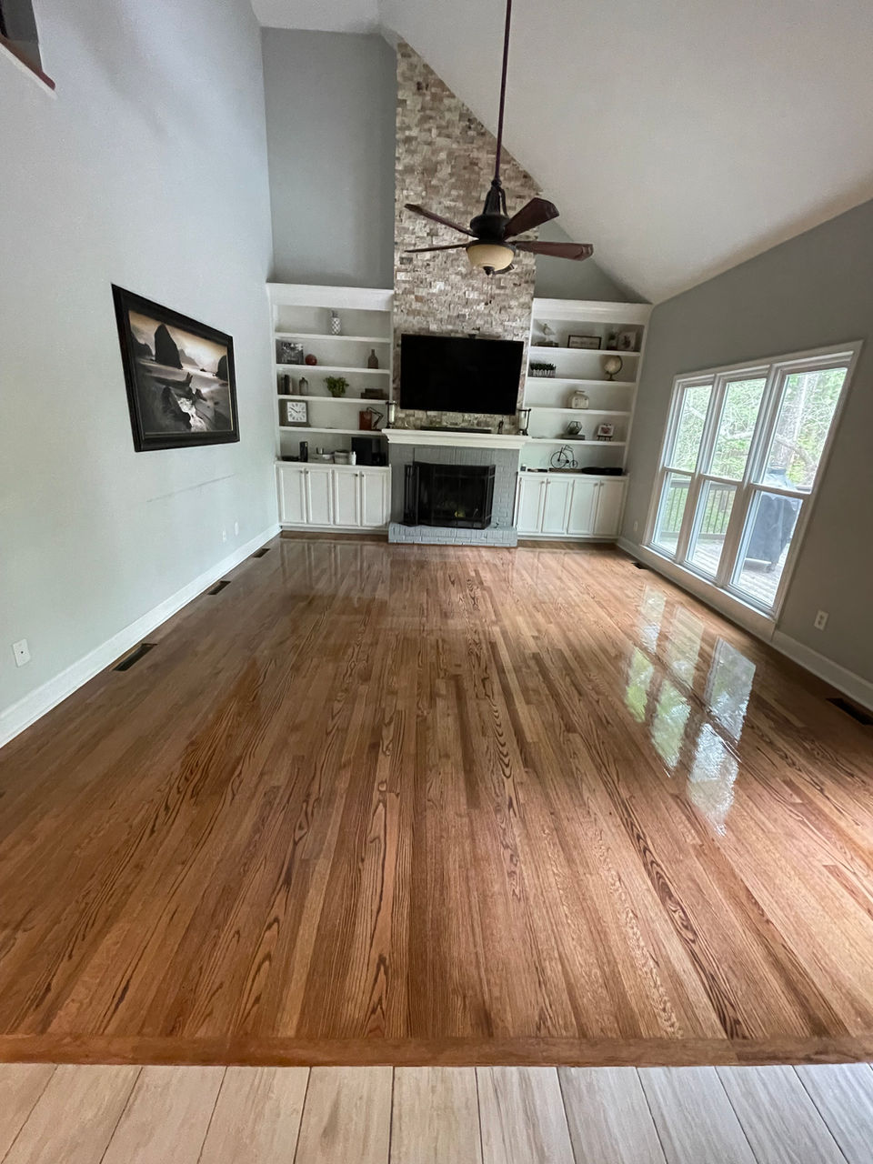 Our Expert Craftsman Brings Beauty Back to a Historic Rebuild. Hardwood refinish to match existing floor stain.